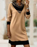 Kvinne Kausal Kjole Med Jultema, Leopardmønster Och Patchworkdetalj
