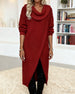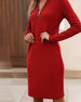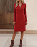 Knappet Kjole Med V-Utringning Og Lange Ermer