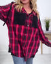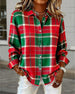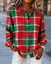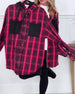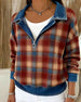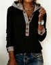 Kvinne Kausal Genser Med Krage Design, Denim Stoff, Patchworkdetalj, Rutenmønster Trykk Och Pullover Stil