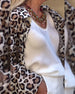 Kjole Kontrastfarge V-Hals Leopardmønster