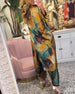 Stilfull Trykket Kjole Med Høy Hals Og Puffermer