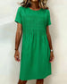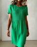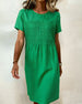 SPESIFIKASJONER Stil: Uformelt Materiale: Bomullsblandinger Kjole type: Rett Kjole Kjolens lengde: Knelengde Halslinje: Rund hals Mønstertype: Ensfarget Ermetype: Vanlig erme Erme lengde: Kort erme Detaljer: Rynket Passform type: Vanlig Årstid: Vår,Sommer Anledning: Daglig Pakken inkluderer: 1 x Kjole STØRRELSESTABELL (cm) Størrelse Bryst Le...