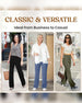 STØRRELSESTABELL (cm) Størrelse Midje Hofte Lengde S 65 95 104 M 70 100 105 L 78 108 106 XL 86 116 107 2XL 94 124 108 Aktiv i Ekstra Komfort - Gå med StilForvandle looken din med disse buksene - designet for funksjonalitet og stil som utstråler din fleksibilitet og tidløse eleganse ved hvert steg! Beveg Deg Uten Begrensning...