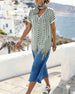 SPESIFIKASJONER Topp type: Bluser Stil: Uformelt Materiale: Bomullsblandinger Anledning: Daglig Halslinje: Slag Mønstertype: Prikk Ermetype: Vanlig erme Erme lengde: Kort erme Passform type: Vanlig Årstid: Vår,Sommer Detaljer: Rynket Pakken inkluderer: 1 x Bluse STØRRELSESTABELL (cm) Størrelse Bryst Lengde S 97 65 M 101 66.5 L 105 68 ...