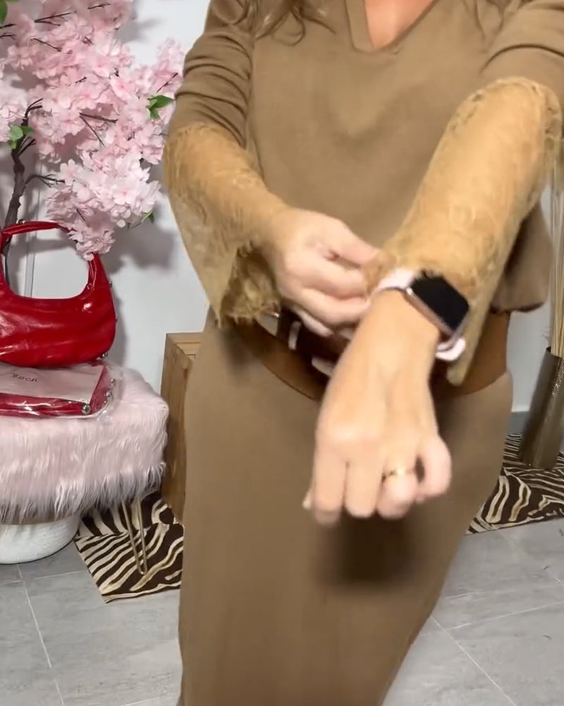 Kjole Slapp Krage Rysjet Panelert Fløyel