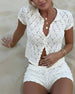 Bluse Prikket Rysjer V-Hals Kort Erme
