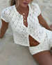 STØRRELSESTABELL (cm) Størrelse Bryst Midje Topp Lengde Bukser Lengde S 82 64 45 27 M 86 68 46 28 L 90 72 47 29 XL 92 76 48 30 Hullmønstret Hekling, Øyeblikkelig OppmerksomhetsskapendeDesignet med en luftig, hullmønstret hekletekstur og delikate, buede kanter, gir dette settet en myk, feminin sjarm til ethvert øyeblikk. Den k...
