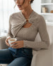 T-Skjorte Dame Lang Erm Ribbet Strikket Sving Front