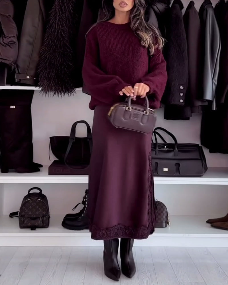 NY Icon1 Stilfullt Sett Med Rund Hals Og Selveste Skjørt