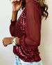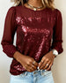 Topp Paljettpanel Rund Hals Langermet