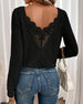 SPESIFIKASJONER Topp type: Bluser Stil: Elegant Materiale: Bomullsblandinger Anledning: Daglig Halslinje: V-hals Mønstertype: Ensfarget Ermetype: Lanterne erme Erme lengde: Langermet Passform type: Vanlig Årstid: Høst,Vinter Detaljer: Blonder Pakken inkluderer: 1 x Bluse STØRRELSESTABELL (cm) Størrelse Bryst Lengde S 97 65 M 101 66.5 L...