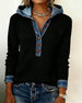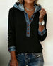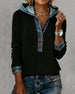 Kvinne Kausal Genser Med Krage Design, Denim Stoff, Patchworkdetalj, Rutenmønster Trykk Och Pullover Stil