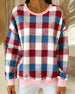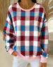 Kvinne Kausal Genser Med Krage Design, Denim Stoff, Patchworkdetalj, Rutenmønster Trykk Och Pullover Stil