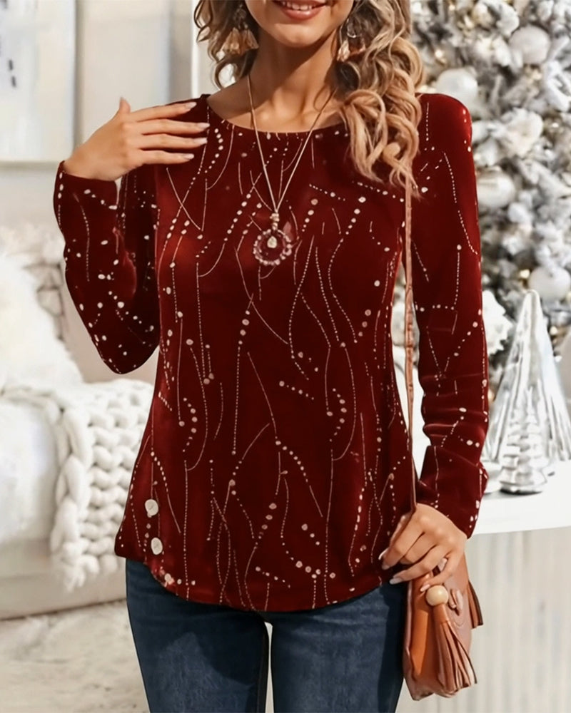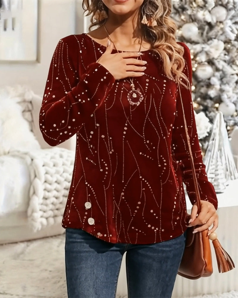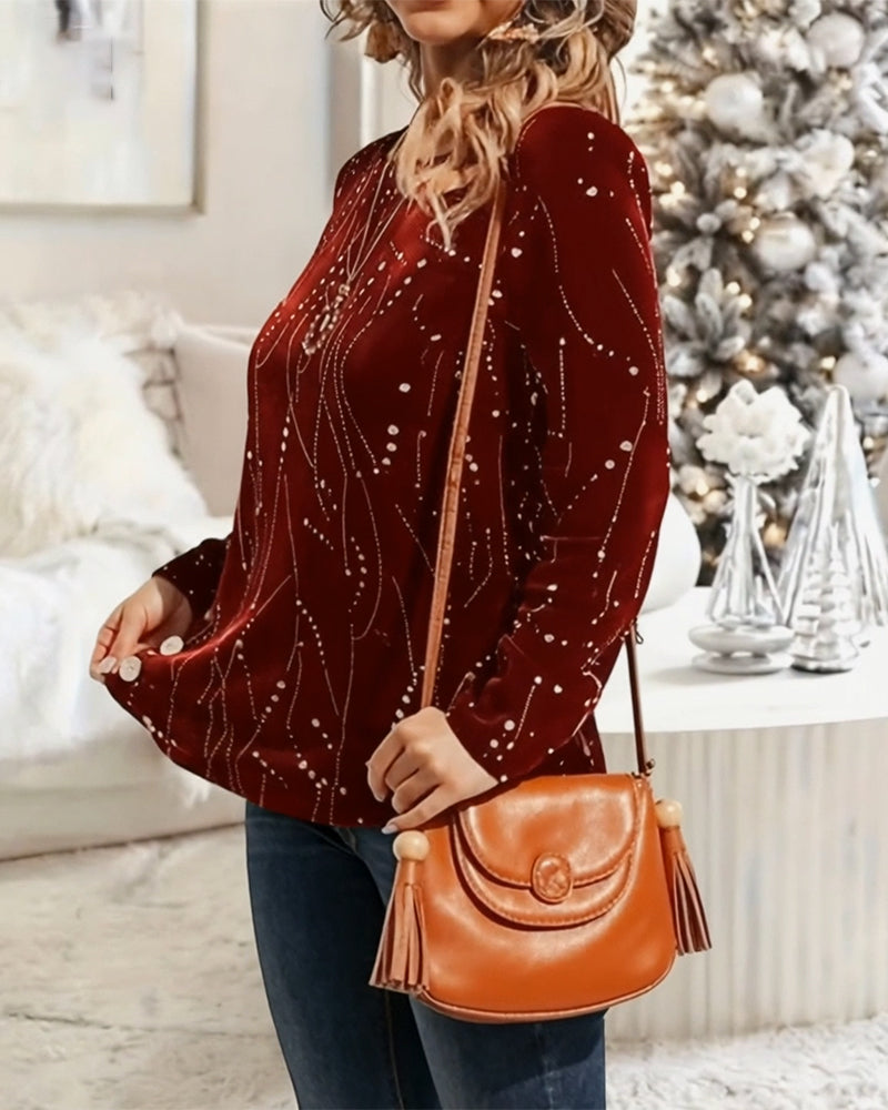 Top Fløyel Juletrykk Langermet
