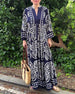 Stilfull Trykket Kjole Med Høy Hals Og Puffermer