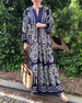 Knappet Kjole Med V-Utringning Og Lange Ermer