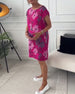 Icon1 Uformell løs kjole med blomstertrykk med korte ermer og lommer