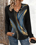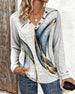 Trykt Casual Topp Med V-Hals Og Lange Ermer