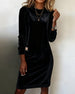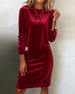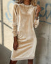 SPESIFIKASJONER Stil: Uformelt Materiale: Fløyel Kjole type: Rett Kjole Kjolens lengde: Knelengde Halslinje: Rund hals Ermetype: Vanlig erme Erme lengde: Langermet Passform type: Vanlig Årstid: Høst,Vinter Anledning: Daglig Pakken inkluderer: 1 x Kjole STØRRELSESTABELL (cm) Størrelse Bryst Lengde S 97 100 M 101 101.5 L 105 103 XL 111...