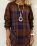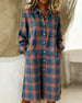 SPESIFIKASJONER Stil: Uformelt Materiale: Bomullsblandinger Kjole type: Rett Kjole Kjolens lengde: Midi Halslinje: Rund hals Mønstertype: Plaid Ermetype: Senket skulder Erme lengde: Langermet Detaljer: Lomme Passform type: Vanlig Årstid: Høst,Vinter Anledning: Daglig Pakken inkluderer: 1 x Kjole STØRRELSESTABELL (cm) Størrelse Bryst Len...