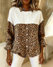 Bluse Løs Leopardtrykk Halv Knapp