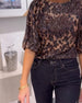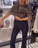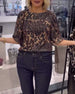 Bluse Med Lanterneermer Paljetter Leopardmønster