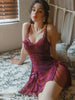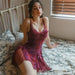 Dame Slim Fit Nattkjole Med Lav V-Hals Snøring Sommerfuglprint Topp Og Ryggløs Lounge-Sett