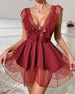 Sexy Ryggløs Nattøy Med Dyp V-Utringning I Blonder For Kvinner