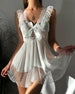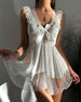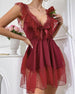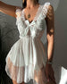 Cami Nattkjole & Bøyedekor Truse Sett Dames Sexy Ruffle Kant Blonder