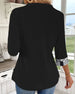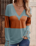 Detaljer Stil: Casual Ermtype: Dropped shoulders Passform: Tettsittende Mønster: Fargeblokk Halsutring: V-hals Materialer: Polyester Design: Knapper Vaskeanvisning: Maskinvask, renses Knappedetaljer: Den unike knappedykkeren hever dette t-skjortet og gir en særpreget touch som skiller det fra vanlig hverdagsantrekk. Fargeblokkmønster: ...