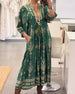 SPESIFIKASJONER Stil: Uformelt Materiale: Bomullsblandinger Kjole type: Rett Kjole Kjolens lengde: Maxi Halslinje: V-hals Mønstertype: Trykt Erme lengde: 3/4 erme Detaljer: Lomme,Rynket Passform type: Vanlig Årstid: Vår,Høst,Vinter Anledning: Daglig Pakken inkluderer: 1 x Kjole STØRRELSESTABELL (cm) Størrelse Bryst Lengde S 97 132 M 101 ...