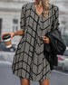 SPESIFIKASJONER Stil: Uformelt Materiale: Bomullsblandinger Kjole type: A-line Kjolens lengde: Midi Halslinje: Skjortekrage Mønstertype: Geometrisk trykk Ermetype: Vanlig erme Erme lengde: Langermet Detaljer: Rynket Passform type: Vanlig Årstid: Vår,Høst Anledning: Daglig Pakken inkluderer: 1 x Kjole STØRRELSESTABELL (cm) Størrelse Bryst Len...