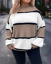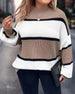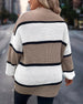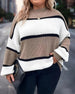 Løs Genser Med Kontraststripet Mønster Og Dropped Shoulder