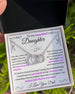 Gi din datter en gave som hun vil verdsette for alltid i sitt hjerte! Sitat på kortet: Til min vakre datter - En dag, når sidene i livet mitt tar slutt, vet jeg at du vil være et av de vakreste kapitlene. Når det er for vanskelig å se tilbake, og du er for redd for å se fremover, se rett ved siden av deg. Jeg vil alltid være der. Hvis jeg måtte ...