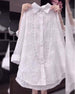SPESIFIKASJONER Topp type: Skjorte Stil: Elegant Materiale: 100% Bomull Anledning: Daglig,Arbeid Halslinje: Skjortekrage Mønstertype: Ensfarget Ermetype: Senket skulder Erme lengde: Langermet Passform type: Vanlig Årstid: Vår,Høst Detaljer: Knapper,Brodert Pakken inkluderer: 1 x Skjorte STØRRELSESTABELL (cm) Størrelse Bryst Lengde S 1...