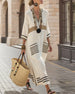 SPESIFIKASJONER Stil: Uformelt Materiale: Bomullsblandinger Kjole type: Rett Kjole Kjolens lengde: Maxi Halslinje: V-hals Mønstertype: Fargeblokk Ermetype: Vanlig erme Erme lengde: 3/4 erme Detaljer: Lomme Passform type: Vanlig Årstid: Vår,Sommer Anledning: Daglig Pakken inkluderer: 1 x Kjole STØRRELSESTABELL (cm) Størrelse Bryst Lengde S ...