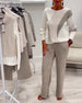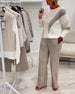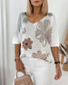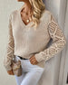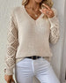 Strikket Topp V-Utskjæring Sexig Perlembrodert Erm