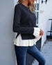 SPESIFIKASJONER Topp type: Topper Stil: Uformelt Materiale: Bomullsblandinger Anledning: Daglig Halslinje: Rund hals Mønstertype: Fargeblokk Ermetype: Vanlig erme Erme lengde: Langermet Passform type: Vanlig Årstid: Vår,Høst Pakken inkluderer: 1 x Topp STØRRELSESTABELL (cm) Størrelse Bryst Lengde S 92 68 M 96 69.5 L 100 71 XL 106 72...