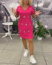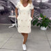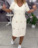 SPESIFIKASJONER Stil: Uformelt Materiale: Bomullsblandinger Kjole type: Rett Kjole Kjolens lengde: Over kneet Halslinje: V-hals Mønstertype: Trykt Ermetype: Vanlig erme Erme lengde: Kort erme Detaljer: Lomme Passform type: Vanlig Årstid: Vår,Sommer Anledning: Daglig Pakken inkluderer: 1 x Kjole STØRRELSESTABELL (cm) Størrelse Bryst Lengd...