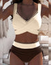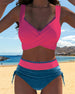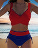 SPESIFIKASJONER Stil: Ferie Materiale: 15% Spandex,85% Polyester Anledning: Ferie Halslinje: Spaghetti stropper Mønstertype: Fargeblokk Erme lengde: Ermeløs Topp type: Bikini BH type: Bøyle-fri BH Truse type: Høyt snitt Passform type: Vanlig Årstid: Vår,Sommer Detaljer: Ryggløs,Snøre opp Pakken inkluderer: 1 x Bikini STØRRELSESTABELL (cm) St...