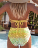 SPESIFIKASJONER Stil: Ferie Materiale: 15% Spandex,85% Polyester Anledning: Ferie Halslinje: Halter Mønstertype: Trykt Erme lengde: Ermeløs Topp type: Bikini BH type: Bøyle-fri BH Truse type: Naturlig Passform type: Skinny Detaljer: Ryggløs,Snøre opp Pakken inkluderer: 1 x Bikini STØRRELSESTABELL (cm) Størrelse Bryst Midje Hofte Under byste ...
