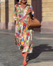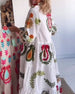 SPESIFIKASJONER Stil: Uformelt Materiale: Bomullsblandinger Kjole type: A-line Kjolens lengde: Midi Halslinje: Slag Mønstertype: Trykt Ermetype: Vanlig erme Erme lengde: 3/4 erme Detaljer: Lomme,Snøre opp,Knapper Passform type: Vanlig Årstid: Vår,Sommer Anledning: Daglig Pakken inkluderer: 1 x Kjole STØRRELSESTABELL (cm) Størrelse Bryst Leng...