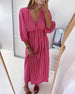SPESIFIKASJONER Stil: Uformelt Materiale: Bomullsblandinger Kjole type: A-line Kjolens lengde: Maxi Halslinje: V-hals Mønstertype: Stripete Ermetype: Vanlig erme Erme lengde: 3/4 erme Detaljer: Snøre opp Passform type: Vanlig Årstid: Vår,Sommer Anledning: Daglig Pakken inkluderer: 1 x Kjole STØRRELSESTABELL (cm) Størrelse Bryst Lengde S 97...