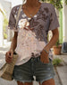 T-Skjorte Blomsterprint V-Hals Kortermet