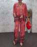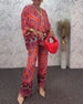 SPESIFIKASJONER Stil: Uformelt Topp type: Bluser Kategori: Sett Materiale: Bomullsblandinger Mønstertype: Trykt Halslinje: V-hals Ermetype: Vanlig erme Erme lengde: 3/4 erme Bukse type: Rett ben Bukselengde: Lang Midje type: Midt i midjen Passform type: Vanlig Årstid: Vår,Sommer Anledning: Daglig Pakken inkluderer: 1 x Bluse, 1 x Bukser STØRRE...