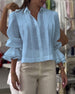SPESIFIKASJONER Topp type: Bluser Stil: Uformelt Materiale: Bomullsblandinger Anledning: Daglig Halslinje: V-hals Mønstertype: Trykt Ermetype: Vanlig erme Erme lengde: Ni poengs erme Passform type: Vanlig Årstid: Vår,Sommer Detaljer: Lappeverk,Knapper,Uthult Pakken inkluderer: 1 x Bluse STØRRELSESTABELL (cm) Størrelse Bryst Lengde S 97 65 ...