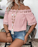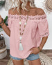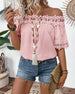SPESIFIKASJONER Topp type: Bluser Stil: Uformelt Materiale: Bomullsblandinger Anledning: Daglig Halslinje: Off Shoulder Mønstertype: Trykt Ermetype: Vanlig erme Erme lengde: Kort erme Passform type: Vanlig Årstid: Vår,Sommer Detaljer: Lappeverk,Blonder Pakken inkluderer: 1 x Bluse STØRRELSESTABELL (cm) Størrelse Bryst Lengde S 97 65 M 10...