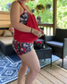 SPESIFIKASJONER Stil: Ferie Materiale: 15% Spandex,85% Polyester Anledning: Ferie Halslinje: U-hals Mønstertype: Trykt Topp type: Tankini BH type: Bøyle-fri BH Truse type: Shorts Passform type: Skinny Detaljer: Snøre opp Pakken inkluderer: 1 x Tankini STØRRELSESTABELL (cm) Størrelse Bryst Midje Hofte Under byste S 88 73 96 73 M 92 77 100...