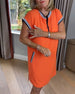 SPESIFIKASJONER Stil: Uformelt Materiale: Bomullsblandinger Kjole type: A-line Kjolens lengde: Knelengde Halslinje: V-hals Mønstertype: Ensfarget Ermetype: Vanlig erme Erme lengde: Kort erme Detaljer: Lomme,Snøre opp,Glidelås Passform type: Vanlig Årstid: Vår,Sommer Anledning: Daglig Pakken inkluderer: 1 x Kjole STØRRELSESTABELL (cm) Størrel...
