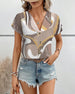SPESIFIKASJONER Topp type: Bluser Stil: Uformelt Materiale: Bomullsblandinger Anledning: Daglig Halslinje: V-hals Mønstertype: Trykt Ermetype: Vanlig erme Erme lengde: Kort erme Passform type: Vanlig Årstid: Vår,Sommer Detaljer: Knapper Pakken inkluderer: 1 x Bluse STØRRELSESTABELL (cm) Størrelse Bryst Lengde S 97 65 M 101 66.5 L 105 6...